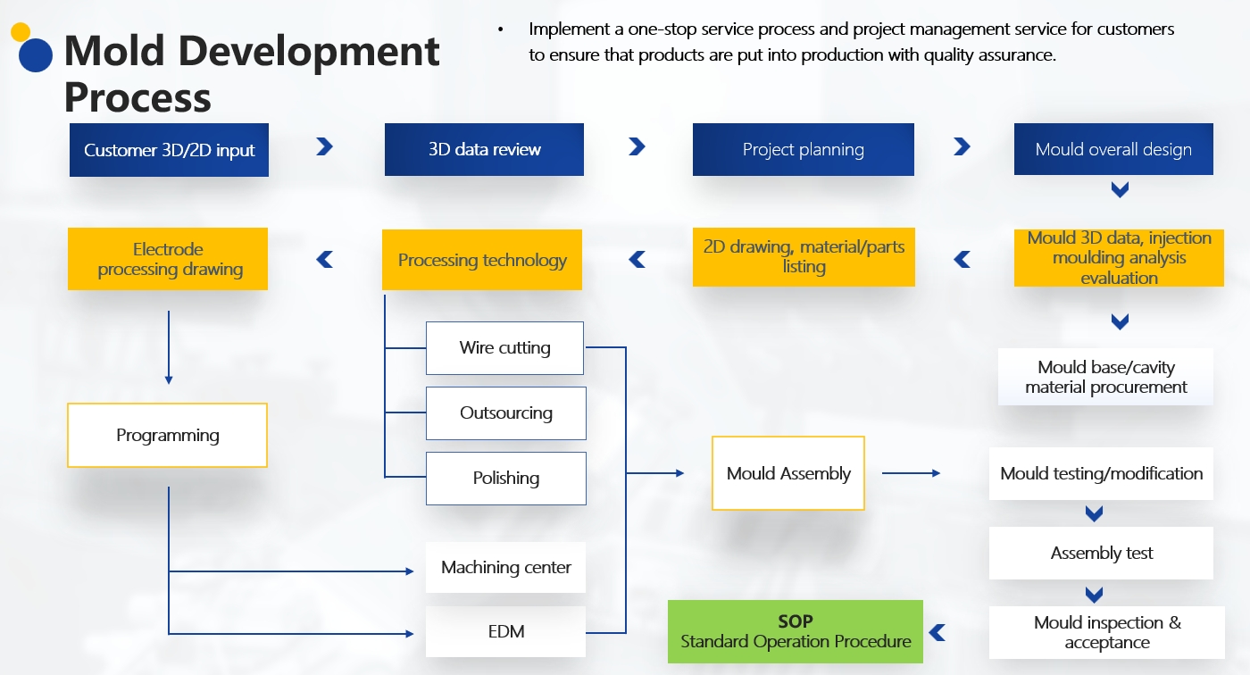 2. R&D (Design according to client’s drawing and requirements). Mould manufacturer with DME. HASSSCO, Standards, Export to France, Italy, Norway, USA, Israel and so on. Professional mold manufacturer with 15 years.